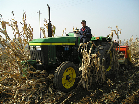 該機可以再也米稈直立地、秸稈還田地、小麥高茬浮稈地、深翻地等不同前茬條件下,一次性完成滅茬稈、開溝、播種、施肥、覆土、鎮(zhèn)壓等多道工藝。配置指甲式的玉米精量排種器與勺式的相比在同一質(zhì)量下由每小時前進5km提高到8km。底盤采用變速旋耕機,可根據(jù)拖拉機不通的前進速度和當?shù)氐霓r(nóng)藝要求、土質(zhì)差別,靈活變換三種刀軸轉(zhuǎn)速,徹底解決了拖拉機跑的快效果差,跑的慢了效益差的問題。