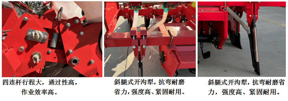 6、地輪采用單臂設(shè)計,有效避免纏繞、擁堵,各行傳動軸連成一體,統(tǒng)一驅(qū)動,傳動動力大,即使其中一側(cè)地輪偶然打滑也不影響正常播種:播種單體采用仿形設(shè)計,可隨地面上下浮動、可實(shí)現(xiàn)播深一致。