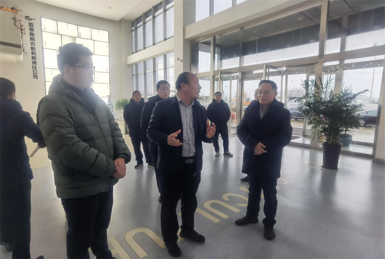 2023年12月15日,國務(wù)院國資委三農(nóng)院士專家組副組長陸永忠院士在唐河縣政府副縣長方明帶領(lǐng)下來到亞澳農(nóng)機走訪調(diào)研,國電投融晟(廣東)新能源有限公司副總經(jīng)理洪萬斌 、國電投融晟(廣東)新能源有限公司項目總監(jiān)于宏磊等陪同調(diào)研。